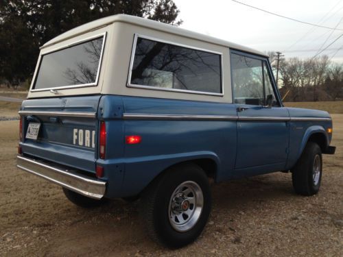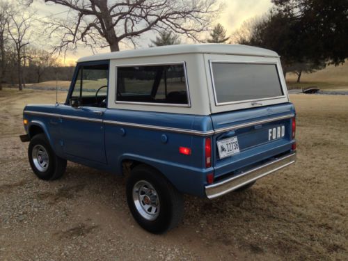 This Bronco starts, runs, drives and shifts very well. 4 wheel drive works as it should with PTO. All gauges work, holds 40+ psi oil pressure and maintains a temp of 180*. Blinkers are not working at this time but all other lights work; head/marker/parking. There are no RUST issues. Both front floor pans have been replaced professionally and look great. The top is also rust free and in great shape with tented windows. The Bronco comes with a disc brake conversion that works flawlessly. New upper and lower ball joints, new lower door seals, new lift gate seals, new rear main fuel tank and sending unit. Fresh Medium Blue Metallic paint that is not perfect but looks very nice some minor flaws. Tires look new but are around three years old. No aux. fuel tank but does have filler tube and cap. Comes with spare tire swing gate and rear seat. (white) Neither are installed. Over all this is a very nice Bronco inside and out. With many options like; cut and flare it, lift it, put larger tires on it, top off and roll bar ect.... Clear title in my name. Call/text/email after 3pm Tues. thru Fri. Anytime Sat. thru Mon. Recap; New Medium Blue metallic paint Disc brake conversion front New rear fuel tank/sending unit New front floor pans New upper/lower ball joints New lower door seals New lift gate seal No rust issues Gauges work Rebuilt 2bbl carb. Original radio/speaker/ antenna Lights work, blinkers not working at this time Heater works Nice Bronco that looks great... something to appreciate.. Thank you for your interest have a great week. On Feb-23-14 at 17:16:20 PST, seller added the following information: I have a bad review. A person did the Buy it Now on another vehicle i was selling and then stated he would pay in three months after his vehicle sold and so i got a bad review because i said i don't think so. Please read my other reviews. Thank you, Keith On Feb-23-14 at 17:32:39 PST, seller added the following information: Phone # 479-644-2100 There is a little fogging at the very bottom of windshield If you would like i can text more pics or video at your request On Feb-23-14 at 17:37:16 PST, seller added the following information: I am looking for a good used wiring harness for a 73 Bronco. Under hood,under dash to the tail lights. Thank you 479 644 2100 text or call Keith |