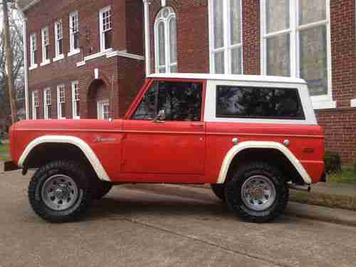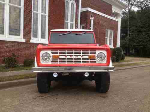 Up for bid is my pretty damn awesome 1974 Bronco Explorer that is built to drive VERY TIGHT and SOLID as a ROCK. This bronco is equipped with a very nice running 302 backed by an automatic transmission with a very mild shift kit that runs out at highway speeds with no problem. This bronco is very very solid with minor rust in various areas that are no concern to even the most serious collector . The under carriage is very clean and treated with rust preventative undercoating. The inside of the tub is sprayed with a very nice linex. All new drive shafts with u joints and trans, motor and transfer case have been serviced. All new power Drum brakes that stop on a dime with no hesitation or pulling. Factory air that blows ICE COLD. Does have factory power steering. All the electrical have been gone through with all lights, blinkers and factory dome light all work. New tuffy locking console with cd player with ipod hook up that sounds awesome. Red seat covers on factory seats in front and original back seat . Still has factory HEADLINER! The paint is a very nice driver quality thats shines up nice but no show winner does have a few flaws but looks awesome going down the road . New 2.5 over stock comfort ride springs added to front for a nice stance. This will make an awesome addition to any driveway and like i said it is built to drive. I know im forgetting some stuff but no disappoints with this one. Please Please call with any questions 662-719-3694 and my name is Jack Westerfield i will be happy to talk bronco at anytime. Please have finances in order before bidding . I do reserve the right to end this auction early . A 500 dollar deposit is due 48 hrs at auction end and full payment within 7 days . I will be glad to help with anything i can to make this a pleasant experience for both parties. Again please call i hate having to check ebay for messages. Good luck and god bless