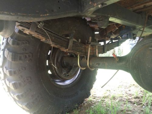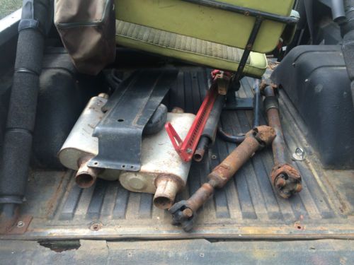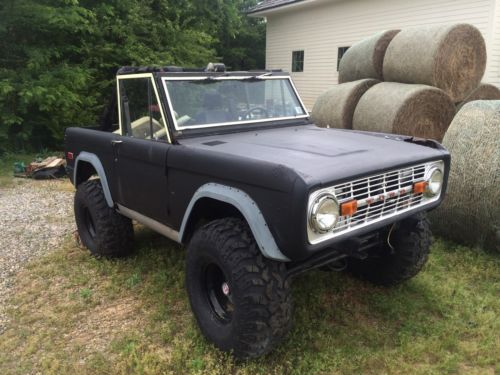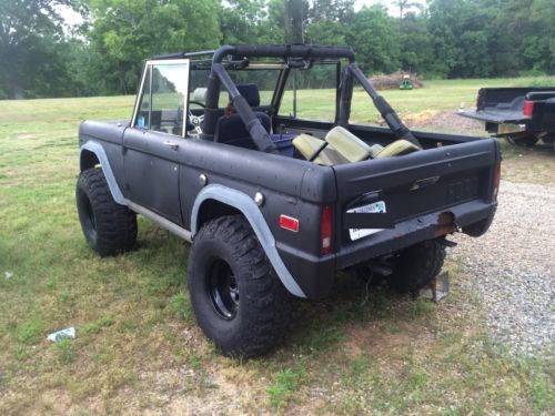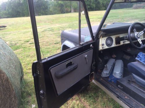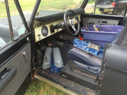 I bought this Bronco from the previous owner because he was being deployed over seas and did not want to pay to store it. I had intended to restore it, but I am moving in a couple months and will not be able to take this with me. The frame was cleaned and painted along with having a 3.5" suspension lift installed about 10 years ago. The suspension lift only has leaf springs and will need shock absorbers. The body does have severe rust and will need new floor pans, fenders, tailgate, and several patch panels, or you could also just order a new fiberglass body to replace the rusted out steel one. The body is currently just placed on the frame and is not bolted down. It has 302 that does turnover freely, but should probably be rebuilt. The transmission is a 4 speed manual NP435 which is linked to the Dana 20 transfer case. The engine, transmission, and transfer case are also just set on the frame and are not attached. The tires are 36X13.50-15LT Super Swampers. It does have a brand new Borgeson Steering shaft installed. When the frame was restored it was built for off roading as you can see in the pictures it has heavy duty steering components, a differential guard, hi-lift jack, and skid plate. Please look at the pictures as they will help show the condition much better.