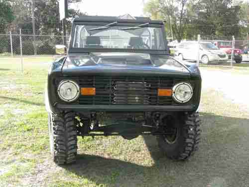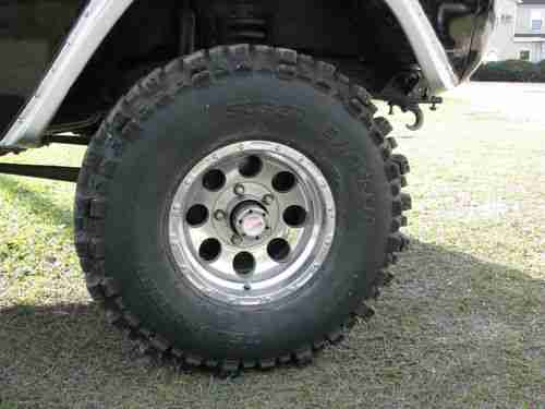 1974 Ford Bronco 302ci PS PB A/T it rides on 35 x 12.50 x 15 Super Swamper Boggers that are almost new. 95% tread remaining. The Bronco is 90% restored, fresh paint, custom seats and console, stainless door hinges, new tailgate, new hood, new wing glasses, new windshield, custom dual exhaust, spray in bedliner in engine bay and entire cab and bed area. Hush mats in floorboard and firewall. Many more upgrades, too many to mention. It also comes with the original hard top, and a half cab, the original seats, spare tire carrier and much more. All goes for the final auction price. Shipping will have to be arranged by the buyer and payed for by the buyer. I will deliver it within a 100 miles or so for a dollar a mile. Any questions just message me and I will do my best to answer all questions. The 302 is a very strong motor and was just rebuilt.