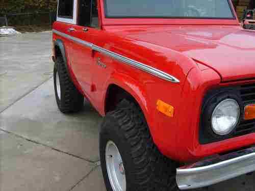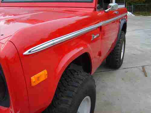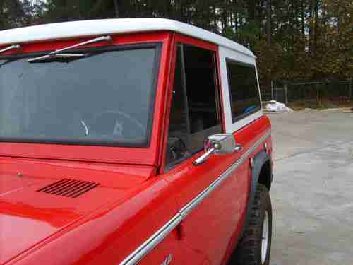 For Sale 1975 Ford Bronco Explorer Model. There were only 13,200 Broncos produced in 1975, the lowest from 1966-1979. This one was built in late 74 making it an Explorer model. This truck is family owned and I'm the Third owner through the family. It was purchased here in Augusta, Ga. In 1975. I have owned this Bronco since 1994. The motor and Transmission have been rebuilt. Both have less than 1000 miles. The motor is a V-8 302 and the Transmission is a C-4 automatic. The front axle is a Dana 44 and the rear Axle is a 9-Inch Ford 28 spline, all stock for this truck.Transfer case is the Dana 20. Nothing has been changed. Has power steering with manual brakes. Interior has been redone, has all new bushings, brake lines, exhaust, shocks, new wheels and tires. Painted a few years back, but has always been garage kept. The dash has the original red paint. Runs and drives great. Has had no rust covered up. Has all the original doors, fenders etc. to include all the original glass .Nothing has been replaced on this truck. Has Factory after market air-conditioning. Did not put the belt back on after rebuilding the motor, but it is all there. Was going to give to my son, but he decided he rather have a Ford Truck, so I just have no need for it. Will make someone a nice Bronco. If you have any questions, please Email me. Thanks.