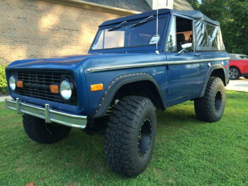 Very clean 1975 Ford Bronco with Wild Horsed 3.5" Lift. New 35" BFG MT, New Fuel 15X10 Wheels, New 23 Gallon Tank w/in tank EFI pump. Ford 302 and 3 speed manual (3 on the tree!). 1992 Ford Mustang EFI conversion with New Harness. Also installed correct EFI camshaft. New Wild Horses Front Disc and Power Brake system. New Wild Horses drive shafts (Front and Rear). Ford Escort front seats with Shoulder harness seat belts. Also have Hard Top and Bimini Top. I also have all of the original engine parts and interior parts that have been removed. Over $14,000 in brand new parts in last 6 months. This truck is ready to be daily driven as is or ready for a minimally expensive frame off resto as all of the hard work has been completed. This truck came from Kansas less than a year ago.