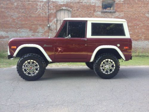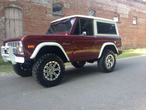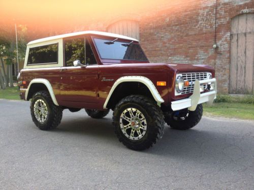 Merigold Mafia Classics is proud to offer this beautiful Classic Bronco for Memorial Day Weekend. We are not dealers in the classic car industry, but enthusiast and builders of solid southern Broncos and anything cool and collective. The Classic Ford Bronco is one of our favorite hobbies to build and drive and enjoy. We love them all but unfortunately can't collect and keep them all. Below are the details of the Bronco we have listed for sale today. You are Bidding on a Very Nice and Solid Southern Un-Restored 1976 Ford Bronco with some of the best options offered in the Classic Bronco Daily Driver Market. Garage kept, never abused or used for off-road purposes!! This Bronco is equipped with Cold A/C, Power Disc Brakes, Power Steering, 302 V8 and C4 Automatic Transmission. The Paint on this Bronco is about 5 years old with minimal blemishes besides normal use. The body is Very slick with only one pinky finger size rock peck hardly recognizable. The Rocker panels are original and solid as well as the firewall and inner fenders. Floor pans are original with only small crack in the 90% seam that has been fixed and there are no issues. The Tub is absolutely solid with no issues whatsoever. All of the Door Jams, Door Post, Windshield Frame, Tailgate Hinges, Roof and Rain Gutters are as nice as the day it was purchased in 1976. There are No Issues of Rust or Rot with this Bronco!! The 302 V8 was Rebuild in 2008 with the Odometer Reading 49k miles, the truck now has 62k miles. At 56k miles the C4 Transmission was rebuilt along with the transfercase, also adding new U-joints, and going completely through the front and rear-end. Just last month the A/C Unit was reworked and Recharged and blowing Snow Flakes!! As you can see this Bronco has a much better Upgraded Suspension Provided by James Duff. Last month added to this Bronco was a 3.5 Inch James Duff Suspension System with Relocation Track Bar Bracket, 4% Radius Arm bushings, Springs, and Shocks. James Duff offers some of the best suspension products on the market and specialize in Broncos, so this is what we use. Optimum Ride and Driveability!! New Pro-Comp 6031 17'' Series Chrome Plated Rims Wrapped in New 285/70/17 IROK ND Super Swamper Radials. These tires ride and handle great with no Road noise!! As you can see the Interior has been Re-Upholstered to match the theme of the truck and looks amazing, but yet remaining the original Low Back Buckets from Ford. Also a Full carpet kit was added front to rear. New dash pad cover installed and center console also installed. Professionally tinted windows all the way around. Also added was a nice Double Tube Push bar mounted to the factory existing bumper. I know I am leaving some things out , but as you can see , this Bronco is ready to rock. This bronco runs , drives and rides as good as it looks and I would not hesitate to go anywhere at any speed in this Bronco. All of the lights and factory gauges are working and as accurate as can presume. Never and problems or issues. This will make someone a great bronco for a long time to come. All of the hard work, time, labor, and money has been spent. Please feel free to call any time with questions you may have, we are more than glad to assist you in any way in your buying experience with Ebay. WE DO RESERVE THE RIGHT TO END THIS AUCTION EARLY DUE TO A LOCAL SALE,, AND ALSO ANY ZERO 0% FEEDBACK BIDDERS MUST CONTACT BEFORE BIDDING. THANK-YOU FOR LOOKING, HAPPY MEMORIAL DAY , AND GOOD LUCK BIDDING!! |