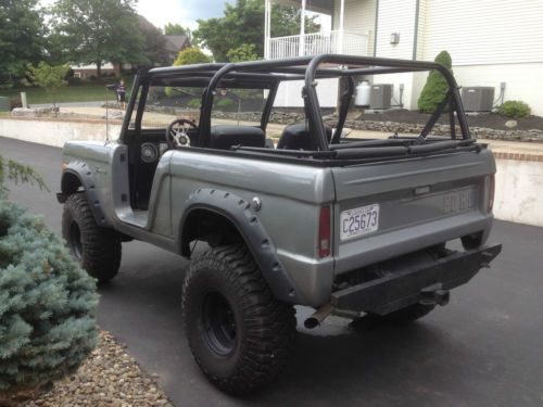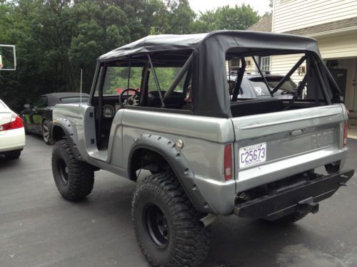 You are looking at a very nice 1976 Ford Bronco. All mechanical, engine, transmission, lift, seats, seatbelts, wheels tires have less than 300 miles. The engine is a newly built Windsor 351 Long Block V-8 with a Holley 650 Double Pumper carb, and MSD Street Fire Ignition, Magna Flo Exhaust. All new radiator, hoses, mounts, bushings, axle bearings, seals, hubs, rear driveshaft, Power brake booster, Wiper Assembly. New Family Style 6-Point Roll cage powder coated black, 3-Point Shoulder belts, original seats reupholstered, Locking security box with cupholders. Fiberglass Door Inserts, Bestop Supertop with Bestop Soft doors. The wheels are American Racing 15" wrapped with Mickey Thompson MTZ 35" all terrain tires, James Duff Lift. This Bronco is amazing to drive!! |