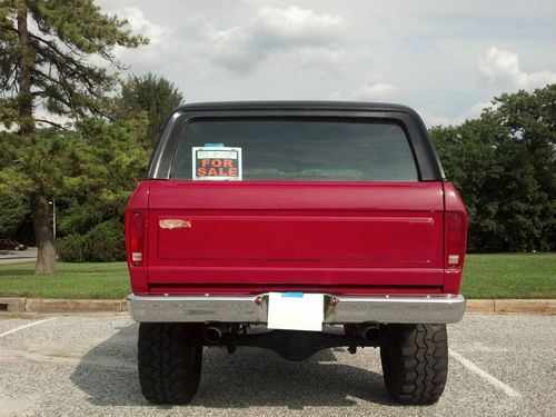 This truck is in good condition for the year and was driven daily for short distances. The engine runs fine and has a rebuilt Holley carb from 2010. The water pump and timing chain were replaced. Also the plugs, belts and wires were replaced two years back. A new starter, alternator and ignition switch were installed last year, along with a sway bar. The entire body is in good shape despite some minor rust and chipping. The front grill has been rebuilt. The tires have 20% tread and are 38's. The bronco has never been on any serious off road trails, only a field or two, The interior is carpeted with newer seats and back bench seat. There are four subs in the back as well. We are the third owner, and the second owner restored the body and engine in the early 2000's.