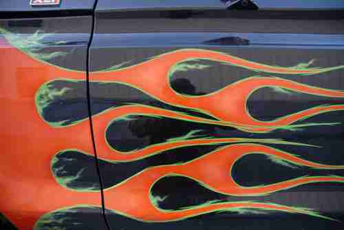 It was also painted professionally, the flames were airbrushed then clearcoated. I need to install the high pressure A/C hose and charge the A/C. I believe the compressor is new. Everything works as it should, except it needs a new speedometer cable. Also if you do not like the mudders I will replace them with tire of your choice.
