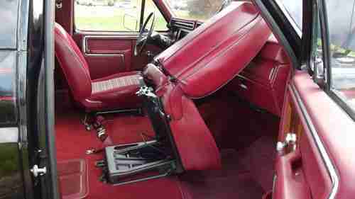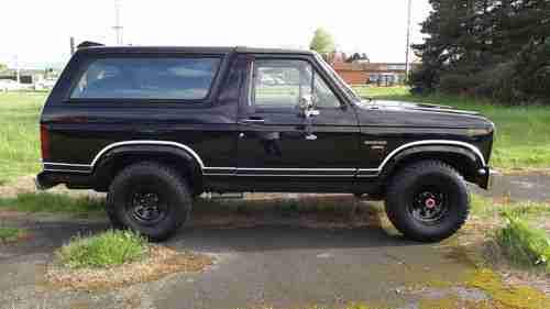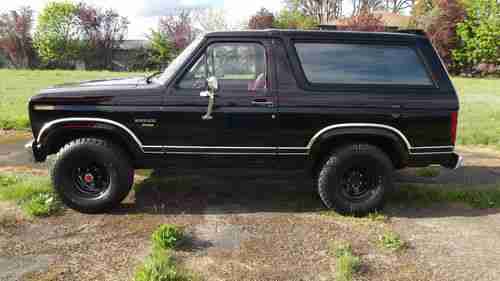 1984 FORD BRONCO XLT full size with removable hard top , lift kit, new tires and wheels, chrome front and rear bumpers, tow package, beautiful black exterior paint with red hand painted pinstripes,power rear window,privacy glass,V8 engine, new exhaust with flowmaster,automatic transmission,locking front hubs, beautiful burgundy cloth interior with original tweed insert rear seat, polished door seals, These big body Broncos are rapidly increasing in value and collectibility.This vehicle is being sold AS-IS. No warranties apply- express or implied. Buyer is responsible for shipping.