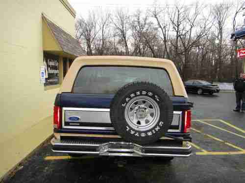 Very sharp & well maintained Eddie Bauer Bronco. Everything is operable on the vehicle and there are no secrets. The vehicle was obviously garage kept most of its life because of the lack of rust that you typically see on 25 year old vehicles. The carpets are free of stains or rips as well as the seats. The tires are approximately 75% life and the wheels are free of any road rash.