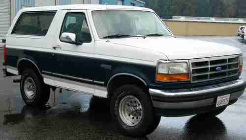 1993 FORD BRONCO WITH 111K,4 WHEEL DRIVE,XLT PACKAGE,RUNS AND LOOKS GREAT.ADULT OWNED NEVER ABUSED,WELL MAINTAINED TRUCK.NEEDS NEW RUBBER.HAS HAD A RECENT MECHANICAL INSPECTION DONE AND MAINTAINCE ISSUES WERE COMPLETED AT THAT TIME,NEW BELTS AND OIL CHANGE ALREADY DONE.EVERYDAY DRIVER CURRENT REG AND SMOG.HAS SMALL DENT BY DRIVERS REAR TAILIGHT.THANKS