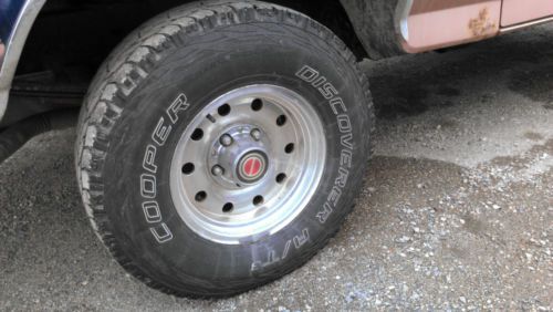"New" parts: New starter (3/20/14) Cooper Discoverer A/T 3 tires (purchased last December ~16k miles-good tread) with spare tire (and Bronco cover) Fuel Pump (replaced 3/25/13) Front brakes (1/30/13) Locking hubs (12/2/13) Distribution cap (12/2/13) |