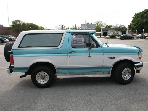 GOOD DAY,,,,FOR BID IS A VERY NICE, TWO OWNER FULL SIZE BRONCO. THIS IS IN REAL NICE SHAPE FOR A 20 YEAR OLD VEHICLE AND UNLIKE MOST OF THESE WAGONS, THERE IS VERY LITTLE RUST. THE TAIL GATE AND WHEEL LIPS ARE IN GOOD SHAPE WITH THE INNER TAILGATE LOWER EDGE JUST STARTING TO CHIP,,,,,,A SMALL SPOT HERE OR THERE WHICH I HAVE SHOWN, BUT ALL IN ALL A VERY NICE WAGON...THIS IS THE 5.0, 4X4 VERSION AND THEY WERE ALWAYS RELIABLE....THE INTERIOR IS NICE WITH ONLY TWO SMALL NICKS IN THE LOWER DASH AND SEAT BURNS,,,BUT NO ODORS,,,,RUNS AND SHIFTS GREAT AND RIDES NICELY...CLUSTER ASSEMBLY WAS REPLACED ON AUGUST THE 5TH OF 2013 BECAUSE OF A CIRCUIT BOARD FAILURE THE TRUE AND ATTESTED TO MILES ARE AS I STATED 158K,,,LOW MILES FOR TWENTY YEARS. THIS IS A PRETTY COLOR COMBO, AND CERTANLY DOES NOT LOOK ITS AGE....WINTER IS A COMMIN, DONT LET THIS NICE 4X4 GET AWAY......AIRPORT PICK UP IS NO PROBLEM,,,DRIVE IT HOME,,,,QUESTIONS? PLEASE CALL ME 443-326-8853