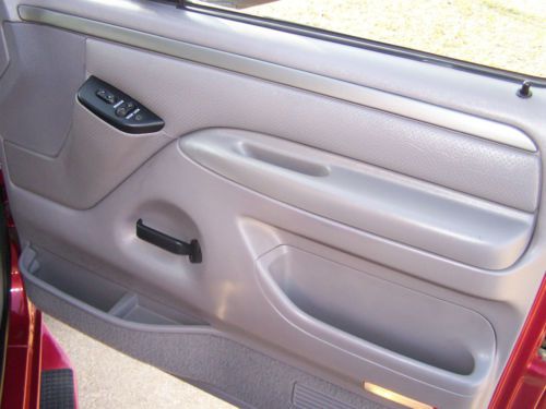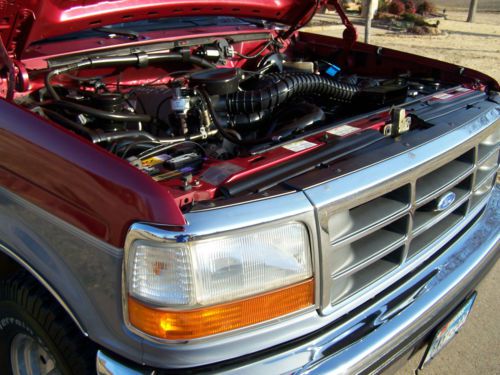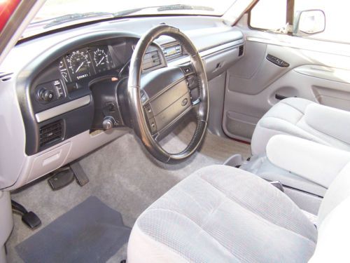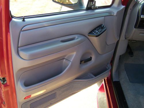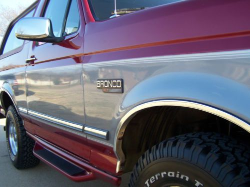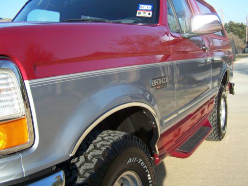 Up for auction is a 1995 Ford Bronco. This is one exceptionally clean, low mileage Bronco That you have been looking for! 60,268 miles to be exact. It is Electric red with the silver accent in the center and Opal grey interior. The interior is very clean with no issues other than one slightly worn spot (not torn) in the drivers seat where it looks like someone had something in their pocket at one time. It has the 5.8 L 351 engine that runs very well with the auto transmission. It drives really well and tight, Shift great and runs awesome. The paint is exceptional and shiny with no major dings other than at some point the spare tire holder looks like it was over extended and creased the very rear part of the quarter. Nothing really bad and hardly noticeable. No rust in the body whatsoever. It has brand new B.F Goodrich all terrain 31x10.50 Tires that are slightly larger than stock that give it a great stance. It has the original cargo net along with the owners manual and original window sticker! It has the factory compact disc player along with power door locks and power windows. Has the 3.55 regular ratio rear end with the trailer tow package and electronic 4x4 shift. Several other options on the window sticker are as follows.Light opal clear coat accentRear window defrosterPrivacy glassBright electric mirrorspower door locks / Mirrors5.8 EFI engineElectronic 4 Speed automatic transmission3.55 regular ratio axleRemote keyless entryForged aluminum wheelsElectric shift 4x4Premium CD stereoRetract cargo nettingThis is a one owner Bronco that is exceptionally nice! It was bought new at Bob Utter Ford in Sherman,Tx. I bought this Bronco from one of my good customers that had it under his carport its whole life. I bought it with the intention of keeping it, but I have realized I have too many cars to keep so it has to go. If you are looking for an exceptionally clean, Very low mileage Bronco with an awesome color combination and the big 5.8, this is it!