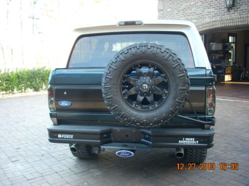 Unbelievable Condition 1995 Customized Ford Bronco Eddie Bauer 4 x 4. 4 inch Lift with Fuel Wheels and Nitto Trail Grapplers. Awesome Paint Job. Deep Tourmaline Green and Arizona Beige metallic. A couple of small minor chips from the Big tires. Runs and Drives like New. Killer stereo-WAY LOUD!!!!!!! Local Professional Car Stereo shop built the sub woofer box with dual JL Audio Amps, Hertz Speakers, Pioneer IPhone/Ipod Flip Screen head unit. Custom Leather interior. Carpet is almost like new. Royalty Core Grill. Cold AC. F-250 Console. Very nice example of the original SUV. One Bad Ride!
