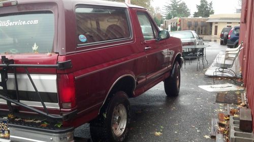 1996 Ford Bronco XLT. The truck is super clean compared to alot of the full size Broncos that are around. The only rust on the entire truck is on the driver's side rear fender well. I have the patch panel to repair the rust and it will come with the truck. The truck runs and drives with no issues. New tires and new front brake pads. Warn premium aftermarket locking hubs. Power everything. Rear tailgate is fully operational. Truck has about 156,000 miles and runs strong. 5.0 motor and automatic transmission. Factory radio with AM/FM and CD. Many newer parts on the truck including shocks and front springs.
