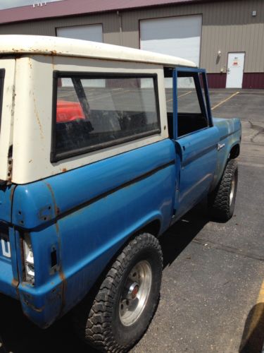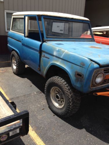 Selling my Bronco project. Complete body & top. Comes with frame & running gear. No engine, trans, or transfer case are included. Body has typical rust, but it is original paint, so there are no surprises under the paint. Dana 30 front & Ford 9" rear. Comes with 4 decent aluminum rims & good tires. Body is just sitting on chassis right now. The doors are included, but there are no hinges. Can help load. Buyer to arrange shipping & pick up.