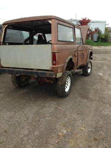 You are looking at a 1976 Bronco with a 302 v8 and auto trans. It was kept in a barn and used as a toy before i bought it to restore. This was only a 2 owner vehicle. Four wheel drive works great. It runs very strong just needs a carburetor. It comes with a removable hard top. All of the original parts are in great shape. All body parts are original. All glass is in excellent shape. All gauges are in working order. The body is rough but the frame is in excellent shape with all new bushings. You will not be disappointed in this bronco. Its a great project car. Comes with extra grill and windshield. I wanted to restore it just ran out of time and have too many projects going on. We can get you a new fiberglass body for it if you want fiberglass. We also can ship if you need shipping. Arrangements upon request.