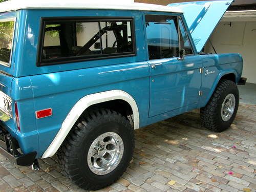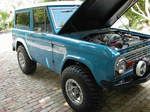 This is an incredible early Bronco with tons of bells and whistles,over 60 K invested in this Bronco with many new parts and a sweet runniing Five Litre Mustang motor with super low miles,C4 transmission and a NEWWarn winch with after market bumpers,updated headlights,all new felts and rubbers,sliding rear side windows,fiberglass updated hood with perfect working hood shocks,oil cooler for the updated and NEW power steering,digital tach etc etc,any questions call me on my cell at 310 985 1114 car is located in Los Angeles,let me take you for a test drive!