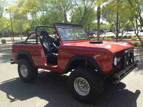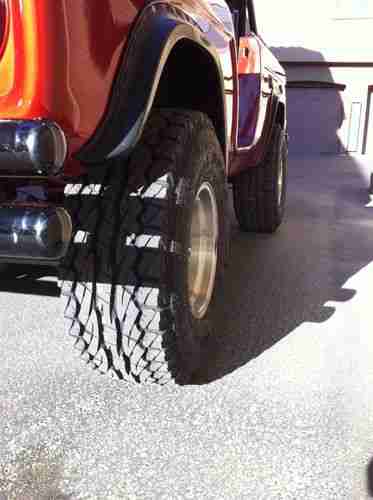 302ci. engine with approximately 10,000 miles on it, runs smooth. 4bbl Edelbrock carb, new. Electronic HO ignition, new. Headman Headers and magnaflow exhaust both new. Catalytic converters (helps with passing smog test if you need to). Sounds mean. New waterpump, new aluminum core radiator. Runs plenty cold in the desert. I stayed with the radiator fan blade as it ran cooler than an electric fan. 90/130amp high output alternator to run the HO headlights, stereo and any lights or any lightbars that you want to add. Recently installed a Wild Horses heavy duty power steering pump (the old ford saginaw pump is piece of junk). New starter motor. Dual fuel tanks with electic switch tank selector, 21 gal. main and 14 gal. auxiliary (I think). New tie rods. New drive shaft. Brand new Falken Wildpeak all terain 33 inch tires, 33X12.50R15LT, less than 500 miles on them. 3 1/2 inch lift with Rancho 2000 shocks. Front disc brakes and rear drums are solid as I just replaced the proportioning valve. Lot's of other little things have been replaced/upgraded.