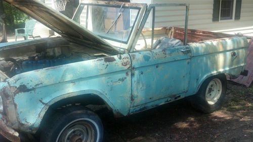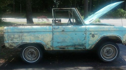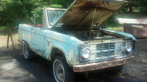 Original Ford Bronco Roadster vin# U13FL766555. This Bronco is a great project with only 4,090 made in 1966. This is a project and will need a full restoration! Bronco does not run but looks to have all the original components except for the air cleaner. Clean title in hand!