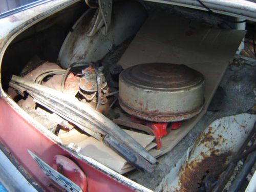 Here Is a true barn find of a rare classic. A 1955 Crown Victoria that has been garaged and off the road i=since 1961, This car still wears its Maine plates with the metal tag for 1960. This is a nearly complete Project car. I say nearly complete, because the previous owner took out the motor and trans then took the engine apart. We found a couple y blocks, heads, and tin. I will include the used parts that the car is Missing, but there may be some small bits we just dont have, I found in the trunk the orig intake and front cover, teapot holley 4v carb, and big oil bath air cleaner. amongst some other bits and pieces. The condition of the car is Good in my opinion for a 60 year old northeast car. There is a couple small holes in the spare tire well, and the interior floors are scaley but I didnt see any holes. I removed what was left of the carpet in an attempt to clean it out and get a view of the floors. The orig seats are still in the car, we did remove the rear seat to get into the trunk as we dont have the keys. the glass is in good shape except for the rh vent window, but will include a good used one. the stainless trim is in good shape...there is a lot of it and with a good buffing will shine like brand new,Again this car needs a restoration or throw a motor in it and drive it as it is...although it has been sitting for over 50 years, so id recommend checking everything out first. The clock shows 46k and I believe that to be original mileage. The dash is all there and in good shape even has the radio, the glove box door was down and didnt want to go up so I let it be rather than bend anything, needs to soak in some penetrating oil to be freed up. You can see in the picture its missing one headlamp door, we do have that, also the rear stone guards in front of the rear tires. Only thing thats missing is the trunk moulding, and we may have that just havnt come across it yet, this has the rear antennae option also. All in all this is a great restoration project of a really cool old car, I also have a Ton of NOS parts that came with the car that we can talk about if you win the car, some of those parts include Trunk moulding, lock sets,suspension,trim, windshield and back lite, lenses, housing, bumper guards, hub caps, trim, chrome, speedometer, and lots lots more. I have a spreadsheet with over 250 items on it and still have more to list. This is a project car and sold as is how is and every other kind of is. Ask questions before bidding, ill be glad to answer anything you might want to know or ill find out, Car is located in Eastern Ct. A 500$ non refundable deposit is due within 24 hrs of the end of the auction. its non refundable only because I still have to pay the ebay fees if you back out. If you dont have the Money please dont bid. check out my other auctions for nos parts and great used stuff for ford products. I reserve the right to end the auction early as the car is also for sale locally...thank you and good luck Id love to see this car go to a good home, and we could help you with the restoration if youd like. Ct Doesnt title vehicles pre 1981 so this car is sold with a bill of sale. You could get a title fairly easily if it was required. we may have that just not found it yet also, if we do find it more than happy to include it after the fact.