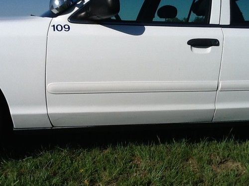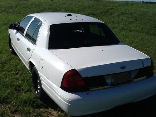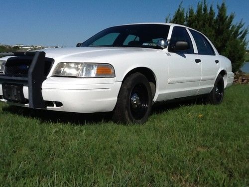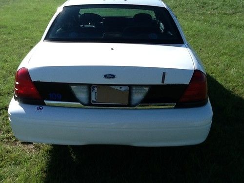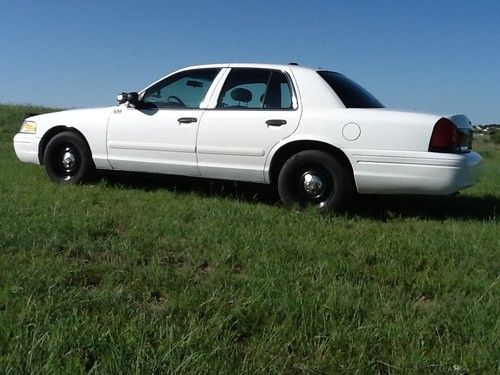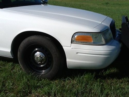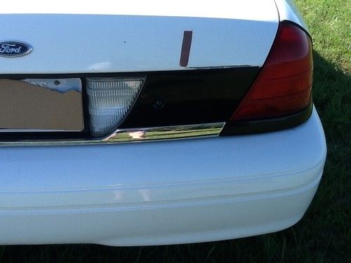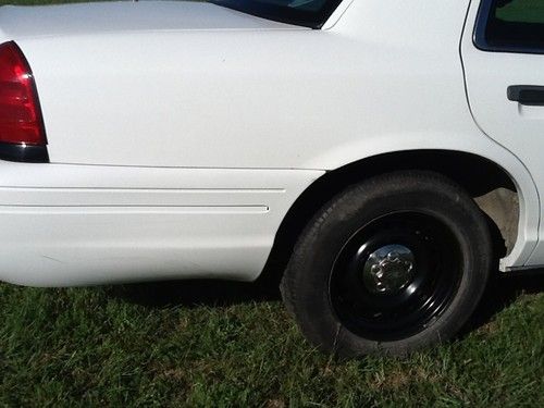 Vehicle mileage is 133,432 at the time of listing but will increase slightly as I use this vehicle to commute 60 miles round trip to work. The tires were purchase from Discount Tire at 124,798 miles. Discount Tires receipt shows these tires to be a 45,000 mile tire. The mileage warranty is not transferable to additional owners however, the road hazard, tire workmanship and rotate and balance appears to be transferable according to the receipt. This warranty on the tires will expire August 5, 2014. The battery is about 3 months old. The rear axle was replaced in August of 2011. The mechanic said the axle came off of a Vic with about 75,000 miles. There is a hole on the seat back of the drivers seat. The interior is in decent shape for a used police vehicle. I purchased the car from the City of San Marcos, Texas in August 2011. I have primarily used the car for stationary security work where it was imperative to have a car that could idle for extended periods and not have overheating issues. It has served its purpose well but I am doing much less of this work now and need the money to put into another vehicle. The AC and heater both work very well. There is a spot light on the drivers side that does not work and is loose. The passenger side has the stem for a spot light but neither the light not the handle is present. The front seats are clothe. The rear seats are vinyl. Both front seat belts work. The rear seat belts do not have the female buckle receiver attached so you would need to purchase them if you need to carry passengers in the rear seat. The headliner is in good shape and is not sagging at all. There is not a working dome light. All headlights, tail lights, brakes lights, turn signals work. The headlights do seem to be aimed down too much but the high beams offer enough light for night driving. The floor of the interior is plastic. I have two carpet mats in the front floorboards. There are several holes in the dash from San Marcos mounting police equipment. The front push bumper has the flat black paint flaking off. The hood has about a 6" by 10" area flaking the white clear coat off. The roof of the car has some paint starting to peel next to the mounted GPS antenna that was left by SMPD. There are four mounts from the low jack locator system antennas on the roof. The trunk has the mount for a radio antenna. There are NO leaking issues where the mounts are on the roof and trunk. The check engine light is currently on and I will try to remedy that this week. The belt is squeezing badly also so I will try to remedy that this week also. I will post an update when these two issues are resolved. There is a popping noise in the steering when I cut the wheel all the way to the left or right at low speeds. I do not know what this sound is.