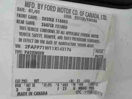 2001 White Ford Crown Victoria 4 Door Sedan One Owner on 2040-cars