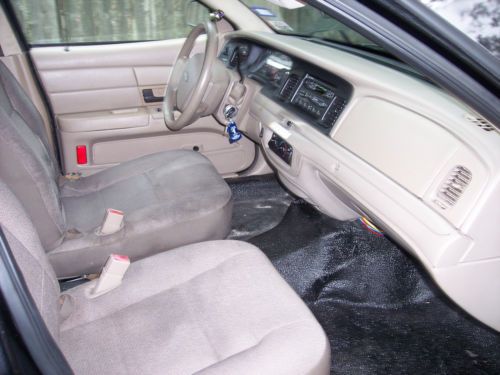 I'm selling my 2005 Ford Crown Victoria Police Interceptor with 147,000 miles. Has cold AC, power windows/locks/mirrors, AM/FM cassette radio, front cloth bucket seats (no center console) and vinyl rear bench seat and vinyl flooring, new xenon headlight bulbs, new Fram AirHog air filter, new fuel filter, recent oil and filter change, new spark plugs, new rear diff cover gasket and fluid change, new battery and new blower motor. has the 200 amp HD alternator too. Outside is clean with only a few minor scratches; the interior is also clean with the exception of the driver's seat being dirty and a hole in the center front headliner where the ticket dome light was. (the switch was bad so I removed the assembly but left the harness connector in case I wanted to put in another one.) The PI idles, runs and drives excellent with great pickup and go. (it feels much quicker than my 07 PI) The 4R70W trans. shifts quickly and smoothly with only a firm shift into overdrive at higher speeds. The trans. does leak when parked and the problem seems to be the fluid was overfilled by the previous owner. I had to wire a horn button and mount it on the A pillar due to the fact the factory horn button on the steering wheel would not work. The blower motor resistor will have to be replaced as the HVAC fan still has only low and high speeds even though I put in a new blower motor; The resistor costs around $15 - $20. It will also need new tires soon. Other than that it drives very well and looks sharp too. The vehicle is being sold AS-IS with no warranties implied or otherwise. If you have any questions please don't hesitate to ask BEFORE YOU BID!!!!!! I will be more than happy to answer any and all questions. Winning bidder is responsible for vehicle pickup and/or transport/shipping arrangements and cost. Title is clear and there is a reserve price.