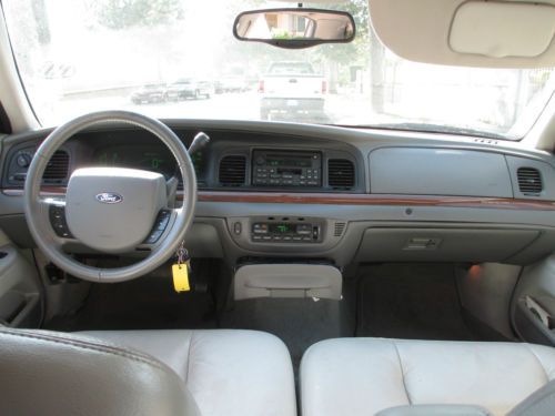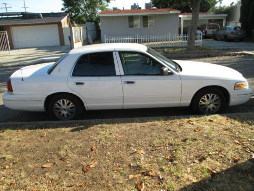 This is a 2005 Ford Crown Victoria LX. It has a 4.6 liter, V8 engine. The vehicle has 163,500 miles, and counting. The vehicle is in good running condition, starts and runs. White exterior and gray interior. Interior includes leather seats, and is very clean and in good condition. Includes an AM/FM/Cassette/Single CD radio. The A/C blows cold and the heater blows warm. The vehicle has a large trunk and includes a police trunk pack, with a spare tire as well. Vehicle has minor dents and scratches (as seen in the photos). What you see in the photo is what is for sale. Vehicle is sold "As-Is."