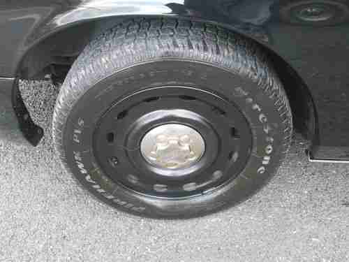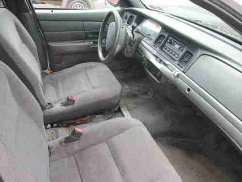 The vehicle is completely 100% working condition including all the windows and the a/c and heater. The car has Firestone tires on heavy duty wheels. This car has all the normal P71 Police Interceptor package items such as a 200 amp alternator, heavy duty suspension and frame, dual exhaust and a limited slip rear differential. The interior of the car is basic black/gray and has all rubber flooring and cloth buckets in the front and a vinyl bench seat in the rear which look new. The remote trunk release works as does the overhead/dome report light.