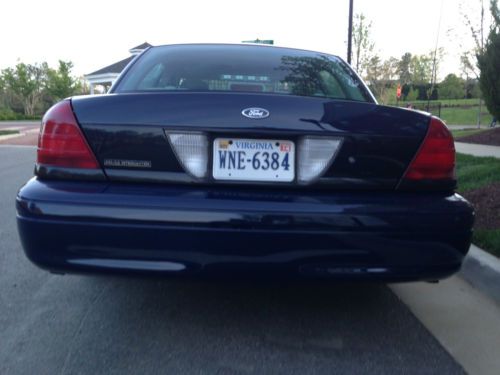 UP FOR AUCTION IS A POLICE INTERCEPTOR THAT COULD BE PUT BACK INTO SERVICE OR USED AS A PERSONAL VEHICLE...HAS ALL THE POLICE EQUIPTMENT STILL LEFT IN VEHICLE WAIL YELP SIREN .. PA SYSTEM.. SIDE AND REAR STROBE LIGHTS.. PRISONER CAGE AND SEATS WITH SPIT SHIELD... SHOT GUN RACK WITH AUTO LOCK ..LAPTOP COMPUTER STAND WITH OVER HEAD LIGHT...POLICE SCANNER RADIO ...HAS THE HOOK UPS FOR SMART PHONE AND COMPUTER AND IPOD...BRAND NEW FULL SIZE SPARE TIRE NEVER ON THE GROUND..ORIGINAL FACTORY REAR SEAT INCLUDED IF YOU WANT TO TAKE THE CAGE OUT AND USE AS FAMILY VEHICLE ..CAR RUNS AND DRIVES GREAT .. COLD AIR COND.. HOT HEAT.. BRAKES AND ROTORS ARE FINE .. BODY IN NEAR PERFECT COND AS IS THE INTERIOR...NO HOLES ...JUST LOOK AT THE PICS... AS PER EBAY POLICY ALL LIGHTS AND SIREN HAVE BEEN DISCONNECTED AND WILL BE DELIVERED TO BUYER THAT WAY... WINNING BIDDER WILL DEPOSIT $500.00 INTO MY PAYPAL ACCOUNT WITHIN 24 HOURS OF AUCTION END ... WINNING BIDDER WILL PICK VEHICLE UP WITHIN 7 DAYS OF AUCTION END CASH ONLY INPERSON....VEHICLE IS BEING SOLD AS/IS .. THANK YOU AND GOOD LUCK