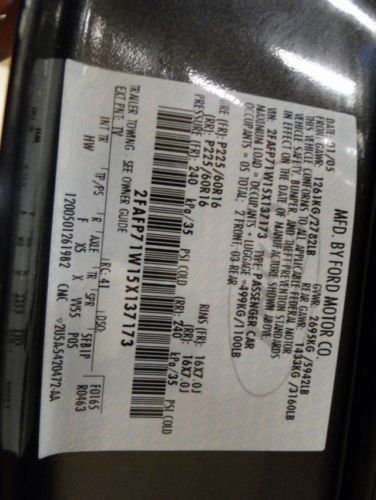 Up for sale is this super clean, unique, beautiful, one of a kind low mileage 2005 Ford Crown Victoria Police Interceptor with the Street Appearance Package. ONLY 63000 Miles!!!!!! This unit is not even broken in yet. It is so clean it could be easily be put back to work and will serve you and your family for many years to come. This Police Interceptor was an unmarked unit owned by our Government/Drug enforcement Agency and assigned to one supervising agent with the Drug Enforcement Administration. The paint is super clean, shines beautifully with only minor scratches. It looks amazing. Absolutely NO RUST!!!! It comes with Four Absolutely Brand New Good Year High Performance Police tires. One full size spare in the trunk. The brakes are in great shape with no vibrations or swaying when driving and breaking at any speeds. The engine and tranny run very smooth as it just rolled out of the assembly line. The engine a super strong, very responsive, and without any odd noises. Absolutely no leaks of any kind. The AC blows super cold ready for hot summer days and the heat works great. This unit is very clean inside, out, and underneath. The interior is in above average, superb, and very clean shape. It has carpet and cloth seats with no stains. The dash has couple of holes from prior law enforcement equipment. It has cruise control, and power driver seat. Every factory option work as it should. This unit was recently inspected and needs absolutely nothing. It is ready for its new owner and will take you any where you wish back and forth. As I have stated, it is so clean and reliable that it could easily be put back to service with very ease. It has low mileage and is not even broken in yet. Two professionally plugged small police antennas holes on the trunk. The spot light is great and in working condition. No leaks or and issues at all. The chrome shines very nice. If you are in the market for a reliable and strong P71 look no further. Don't wait because these P71s are becoming hard to get especially in this shape, color, and overall superb condition. Please feel free to contact me at 773-255-9856 or email me for any further questions or information. Stop by for a test drive I promise you will not be disappointed. My words and pictures wont do this P71 justice. You have to see it in person to appreciate its quality and clean condition. Byers with zero feedback must contact me before biding. This unit is listed locally and I reserve the right to end this auction at any time. Please bid with absolute confidence. Thank you for your time and interest. Thank you so much On Apr-12-14 at 14:42:16 PDT, seller added the following information: