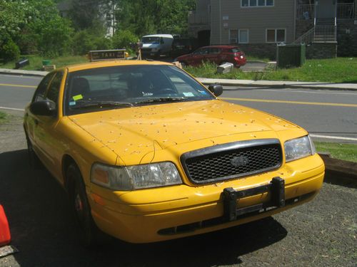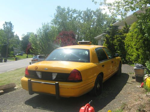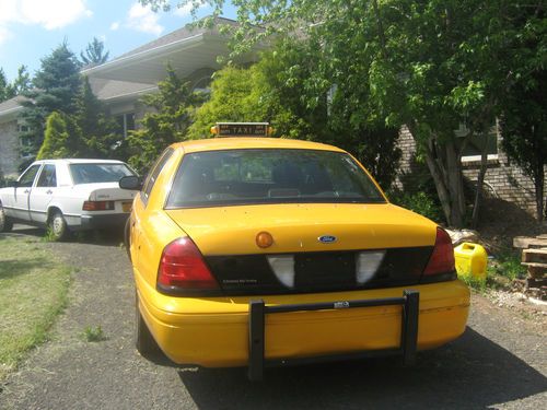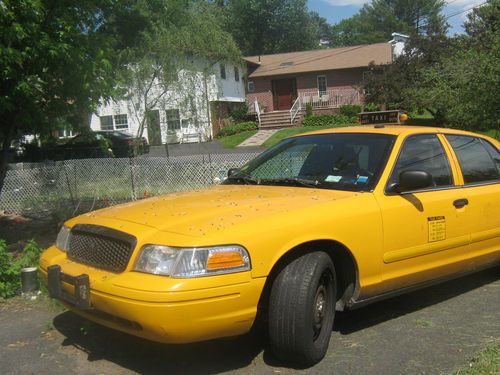 This is a 2008 Ford Crown Victoria former NYC taxicab. It's still used as a taxi, but there's no meter and no medallion. The outside color is yellow. The front seats are black leather and the rear seats are brown leather. Has the separation window in the back and grab handles. Runs and drives fine. Body is in good condition- there are some scuff marks on the bumper. The driver of this vehicle has been smoking in it. On the side front doors has the taxi fares. The seats are a little ripped/worn. In the back there is separate vents and controls for the AC/Heat. Has a radio in the front. There's wiring and harnesses for the meters also- but the meter was taken out. Has power windows and airbags. Needs new battery. There is some nice wood trim on the passenger side. I am the original owner of this vehicle. Car has clear title. Payment is due at the time of sale. I will only complete the sale in person, by appointment only. You will need plates to drive it home or have it towed.