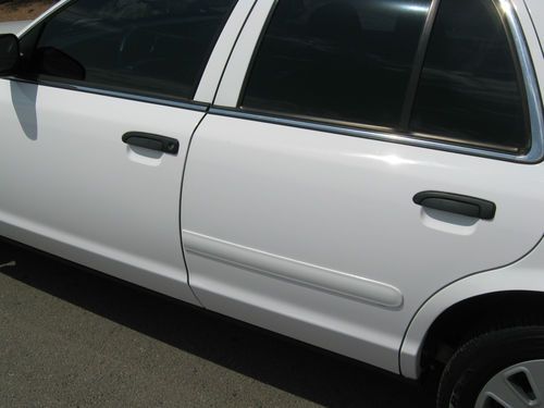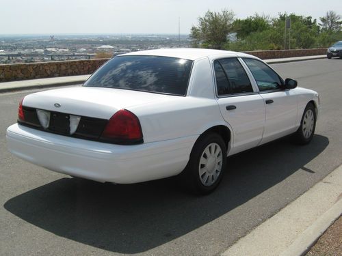 Clean one owner vehicle history report. We have the vehicle history report on file and will provide it to you upon request. This vehicle was owned and operated by the Department of Homeland Security here in El Paso, Texas. It has spent it's whole life in El Paso. It has never been driven on salted roads. NO RUST. The low miles are certified as actual by the U.S. government. The interior is black cloth with black carpeting. The back seat is black vinyl. The interior is in good shape. The power windows, power door locks, power driver's seat, traction control, cruise control, tilt wheel, power lumbar support, power side view mirrors, power trunk release, heated rear glass and AM FM CD stereo all work as they should. The 4.6 litre 250 horsepower police interceptor engine has awesome power and starts and runs great. The automatic transmission shifts crisp and smooth. The brakes have been inspected and are in good shape. The suspension is good and the car handles very well. The tires are new. I will provide a new full size spare and a complete jack kit assembly with this sale. The body is in good shape with only minor nicks and scratches. We had this car inspected for structural damage and found none. We welcome independent inspections and will do what we can to help. See www.inspectmyride.com for a local inspection. I can't anticipate every question so PLEASE call me at 915-244-2871 or send me an email at sselk1.tom@gmail.com or through eBay if you need more information. ASK A LOT OF QUESTIONS. I always answer my phone and email. We are a licensed auto dealer and will provide you with a legal temporary buyer's tag if you decide to drive this interceptor home. All fresh fluids and filters so fly into the El Paso International Airport and drive this car anywhere with confidence. We will be happy to pick you up at the airport.. This car looks, drives and handles very well and we stand by our description as accurate but it is a used vehicle and is being sold as is. Please call me if you have any specific concerns.
