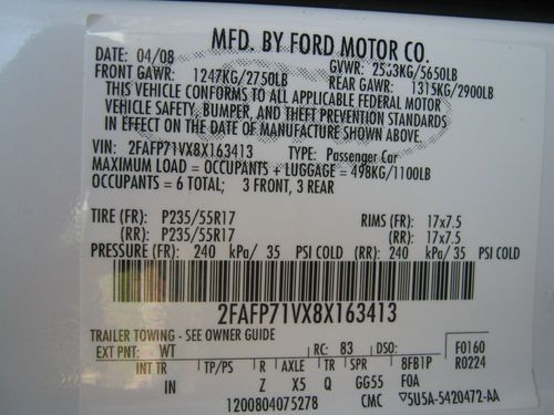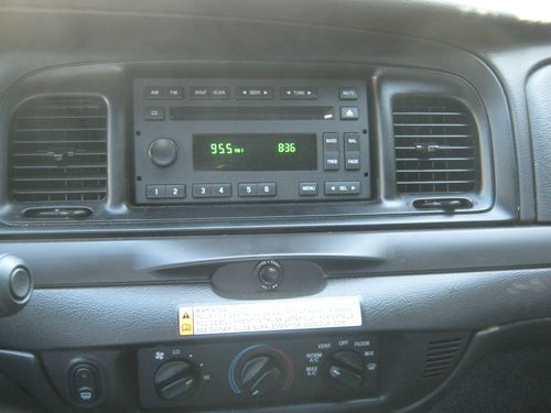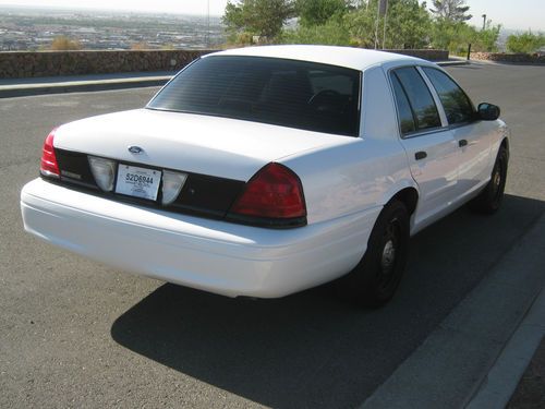 One owner vehicle history report. We have the vehicle history report on file and will forward it to you upon request. This vehicle was owned and operated by the department of Homeland Security here in El Paso, Texas. It has spent it's life in the sunny southwest. It has never been driven on salted roads. NO RUST. The mileage reads 16771. The title will reflect those miles but it will be marked as TMU or true miles unknown. I bought this car at a government auction and the batteries were dead at the time of the sale. The auction couldn't get a mileage reading. When we put a fresh battery in the car the odometer showed 16000 miles and 98 engine idle hours. The interior is black cloth with a black vinyl rear seat. The floor is black vinyl. The interior is in excellent shape. The power windows, power locks, power driver seat, cruise control, tilt wheel, power lumbar support,CD stereo, traction control, rear window defroster, power side view mirrors and power trunk release all work as they should. This car has the limited slip rear differential. The 4.6 litre 250 horsepower police interceptor motor has awesome power and starts and runs great. The transmission shifts crisp and smooth. The brakes have been inspected and are in good shape. The suspension is good and the car handles very well. Full size spare and jack kit. The tires are in decent shape. The body in is good shape with only minor nicks and scratches. We had this car inspected for structual damage and found none. This P71 was involved in a fender bender late in 2009. It was driven to the storage facility at La Tuna and has basically been parked there ever since. That's why the miles are so low. The damage was to the front end sheet metal and it was not structural. The frame is perfect. Please call me at 915-244-2871 if you need more information. We did a nice job on the repairs. We welcome independent inspections and will do what we can to help. See www.inspectmyride.com for a local inspection. See www.nadaguides.com for Crown Victoria values. I can't anticipate every question so PLEASE call me at 915-244-2871 or send me an email if you need more information. ASK A LOT OF QUESTIONS. I always answer my phone and email. My business email address is sselk1.tom@gmail.com . We are a licensed auto dealer and will provide you with a legal temporary buyer's tag if you decide to drive this interceptor home. All fresh fluids and filters so fly into the El Paso International Airport and drive this P71 anywhere with confidence. We will be happy to pick you up at the airport. This car looks, runs and drives great and we stand by our description as accurate but it is a used vehicle and is being sold as is. Please call me if you have any specific concerns. Here is a video of the car. Please watch it. https://www.youtube.com/watch?v=WelR8dvfquw