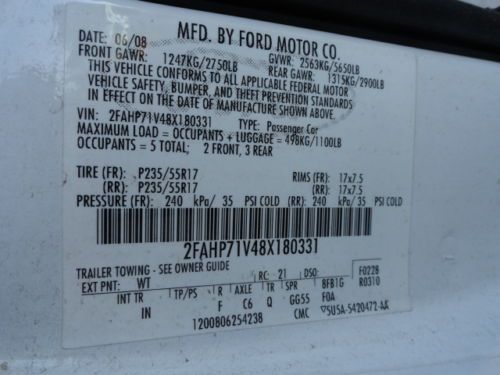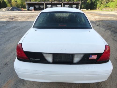NOTE: PAYMENT CAN NO LONGER BE MADE AT PICKUP. THE PURCHASING DEPARTMENT HAS MOVED AND PAYMENT MUST NOW BE MADE AT 100 CHEROKEE STREET SUITE 260 MARIETTA, GA 30090 PRIOR TO PICKUP OF VEHICLE. BOTH PAYMENT AND PICKUP WILL BE BY APPOINTMENT ONLY. DROP-INS ARE NO LONGER ALLOWED. PICKUP HOURS ARE MONDAY-FRIDAY, 8 AM – 11 AM & 1 PM – 3 PM. NO EXCEPTIONS!!! 2008 White Ford Crown Victoria 4 Door Sedan Vehicle # _ 6371 This vehicle can be driven to be loaded or driven short distances (locally) but we recommend towing off lot if traveling outside our local area. VIN #2FAHP71V48X180331 Mileage: 168,257 Cosmetics/Condition · Surface nicks/scratches on body · Paint peeling on roof/hood · Numbers painted over on roof · Plugs in roof/deck lid · Front and rear bumpers scratched · Floor mat worn · Seats worn · Handle for cup holders broken (lying in back seat) · Interior stains The specifications of the vehicle are listed below. Mechanical · 4.6L V/8 engine · 4 speed au Safety & Security