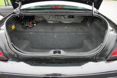 Exterior - 10/10 professionally painted all black just this month at a local body shop. All holes from police lights were plugged properly and painted. No visible scuffs or defects - like new appearance. Interior - 9/10 seats in good shape, minimal holes/defects in dash and interior, headliner is perfect, new vinyl back seat, center console installed, new carpet floor mats, all options function as they should: power windows, power locks, power adjustable pedals, AM/FM radio, interior trunk release, interior lights, engine switch (allows you to remove the key and leave engine on, so you can lock the vehicle and leave running) AC is ice cold, and heat is hot. Mechanical 10/10 Car runs and idles smooth, no check engine lights, etc, transmission is smooth as silk, fresh oil change, new hoses, newer brakes all the way around and a set of new Goodyear Eagles installed on Police issue wheels (impact resistant up to 40 MPH - so wont bend if you bump a curb or anything, etc,) Rides down the road like a brand new car - the heavy duty police suspension is in great shape and provides a smooth quiet ride. This is a flex-fuel car so it runs on either regular gas, or E85 ethanol, which is typically 60-80 cents cheaper than regular gas! The ONLY issue with this car is that there is no spare tire in the trunk. They are readily available however, and are cheap at any local tire shop, etc. If you are looking for a late model blacked-out Police Interceptor this is your car!!!!! This is a big, safe, fast automobile with all the maintenance done by a local municipality. Looks really sharp in all black, and is ready to cruise down the highway or through the city! The car is 99% perfect inside and out, bid with confidence on this no-reserve auction, or buy it now at a great price! (Buy it now is lower than most prices for a comparable black-and-white car) feel free to contact me anytime with additional questions, or to set up a time to come view/drive the car. Thank you for looking!!!!! |