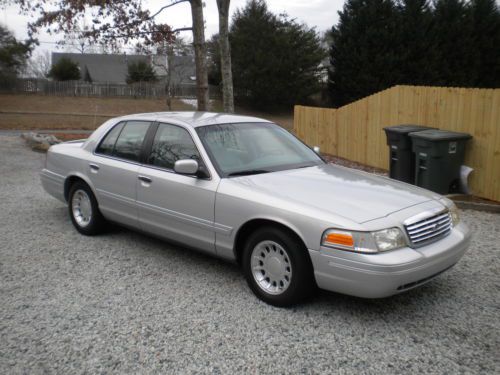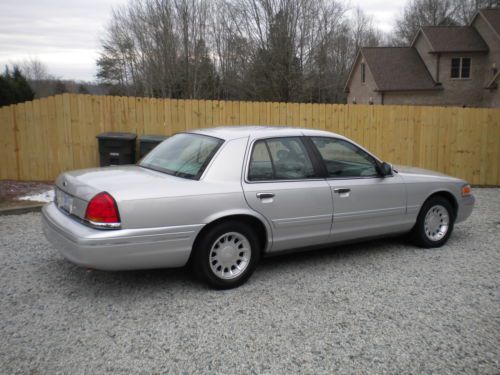 You are bidding on a very clean 2000 Ford Crown Victoria LX . This is a 2 owner southern car with absolutely no rust. Car is all original paint and never damaged. The car has just under 72K original miles and is currently with the second owner. The 4.6l V-8 runs flawless and there is absolutely no issues with the car. The car runs and drive like new. Car has been serviced and maintained on a regular basis and have most records available. The tires are near new. All power options are in perfect working condition. Car is completely loaded with every available option. All paperwork and owners manual is included. Clean NC title. There is a small gouge and scuffed paint on the right corner of front bumper cover. Light paint chips in edge of right fender around wheel opening. Scratch on rear of right rear door under handle. Light scrape on right rear quarter above wheel well. Small ding/ dent on right quarter dog leg. (all damage happened from elderly owner hitting garbage can.) SEE PICTURES Light wear on outer edge of drivers leather seat. Car is very clean and paint and interior is very nice. Pictures show car very well so look at them carefully. Current NADA book value is $5487.00. Get a super buy here . NO reserve!!!! NOW FOR THE FUN PART... WINNING BIDDER MUST PAY $500.00 DEPOSIT WITH 24 HOURS OF AUCTIONS END. CAR MUST BE PAID FOR IN FULL WITHIN 10 DAYS OF AUCTIONS END. PAYMENT MUST BE PAID BY CASH , GREEN POSTAL MONEY ORDER, OR CERTIFIED CHECK FROM A LOCAL BANK IN GREENSBORO NC THAT CAN BE VERIFIED BEFORE PICK UP OF CAR. NO EXCEPTIONS! I HAVE SOLD MANY LARGE ITEMS ON EBAY WITH NO PROBLEMS . BID WITH CONFIDENCE. CHECK OUT MY FEEDBACK.