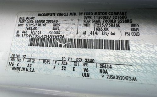 VIN (Vehicle Identification Number): 1fdwe35l42ha96926