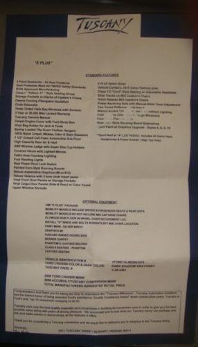 2008 FORD ECONOLINE TUSCANY MOBILITY VAN 5.4L V-8 37,761 MILES POWER WINDOWS POWER DOOR LOCKS POWER DRIVERS SEAT POWER RECLINING SOFA CRUISE CONTROL POWER MIRRORS DUAL AC / HEAT TOWING PACKAGE TRACTION CONTROL LEATHER SEATS ANTI-THEFT PRIVACY GLASS PAINTED EURO-STYLE RUNNING BOARDS TUSCANY RAISED DOORS SIDE PHANTOM II LEATHER SEATING SPORTS ROOF WITH 19" LCD TV/DVD WITH HEADPHONES AMAZING MOBILITY LIFT THAT TUCKS UNDER THE VAN AND DOES NOT INTERFERE WITH NON MOBILITY USE OF THE VAN THIS VAN IS BEING SOLD WITH A LOW RESERVE !!!!!!