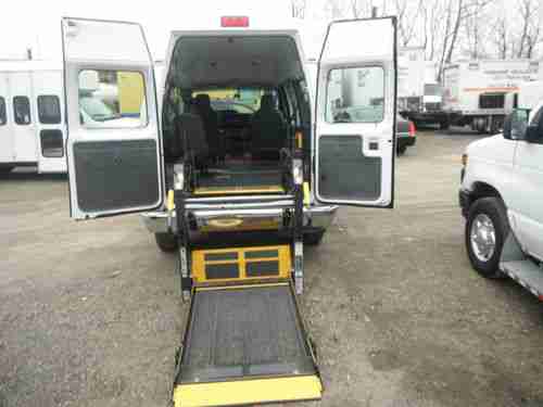 HI MY NAME IS SCOTT I AM THE OWNER OF EXIM AUTO INC AND WE ARE OFFERING A 2011 FORD E-250 WHEEL CHAIR VAN. THE VAN A 52000 ORGINAL MILES.THE TIRES ARE ABOUT 85%. THIS HANDICAP VAN IS IN GOOD CONDITION AND IS READY TO GO TO WORK. THIS VAN WAS LEASED OUT AND RETURNED FOR A NEW VAN. THE VAN IS SPOTLESS INSIDE AND OUT. THERE ARE A FEW LITTLE SCRATCHES AND SCUFF MARKS, NORMAL WEAR AND TEAR. YOU ARE SEEING THE VAN BEFORE IT HAS BEEN DETAILED, WE JUST TRADED THE VAN SO WE ARE INSPECTING THE VAN AND CLEANING THE VAN. THERE ARE A FEW LITTLE DENTS ON THE VAN THAT I CAN SEE. PLEASE LOOK AT ALL PICTURES. . THE VAN COMES WITH A V-8 ENGINE AND AUTOMATIC TRANSMISSION. THE ENGINE AND TRANS ARE 100%. THIS ENGINE RUNS PERFECT IT RUNS LIKE NEW. THE VAN COMES WITH THE HANDICAP LIFT THAT FOLDS DOWN FROM THE SIDE OF THE VAN, THIS VAN IS ADA APPROVED.THE CONVERSION IS DONE BY MOBILITY COMPANY. THE VAN COMES WITH ALL OPTIONS, FACTORY FORD RADIO, A/C/HEAT. THIS BODY OF THE TRUCK IS IN GOOD SHAPE, I SEE NOTHING WRONG WITH THIS VAN READY TO GO. THIS IS A SIDE LOADING VAN. PLEASE TAKE A LOOK AT ALL PICTURES, IF YOU HAVE ANY QUESTIONS PLEASE FEEL FREE TO CALL ME WITH QUESTIONS. I CAN HELP WITH SHIPPING AND TRANSPORTATION.