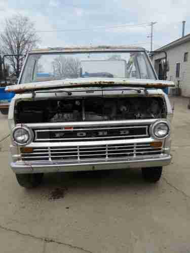 What you are viewing is a 1971 Ford E300 motorhome cab and chassis. This has a 302 V8 automatic with power steering. The motorhome body was removed. The vehicle has roughly 73,000 miles. We started it up with starting fluid and it sounded good and quiet. It has been sitting for about 4 years. If you have one of these vans, and need one for extra parts, this one has the factory installed power steering. Which a lot of these vans did not have. It has the aluminum grill shell which looks to be in pretty good shape. The front doors appear to be in good shape. Both front seats and dash are in good condition. This has the big bell C4 transmission. It has the Dana 60 rear axle. It has a clean Ohio title. This vehicle will need to be towed or trailered at winning bidders expense. I am open to a buy it now offer. The 302 V8, even after sitting after 4 years, started right up with no noise. The engine would be great for an early style Bronco or a Mustang project. If you have any questions please call me at 937-414-7985 my name is Paul. A $200.00 non refundable deposit is required within 48 hours of end of auction. And balance to be paid upon arrival in CASH.