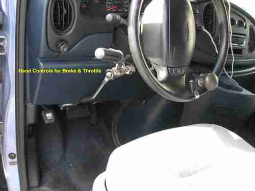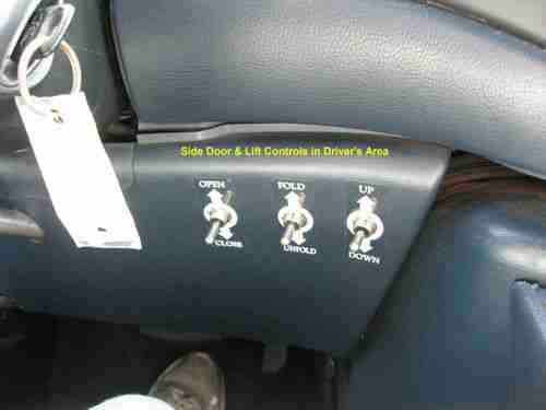 This vehicle is well equipped for a paraplegic driver. It has outside controls for opening/closing the side doors and raising/lowering/tilting the lift. The lift is rated for 600 lbs. and can be controlled up and down from your wheelchair while on the platform. Inside, there are type "A" tie downs behind the driver's seat to secure your wheelchair. The drivers seat is motorized, and can move back, rotate and up/down electrically. This eases the transfer to the driving position. The lift and side doors can be operated from the driver's seat. The vehicle is equipped with hand controls to operate the accelerator and gas pedals. The steering wheel has a knob to facilitate operation with one hand. The mileage of 94,791 will be about 5 miles more, as I need to take it for a smog test.