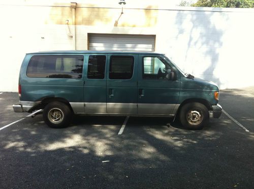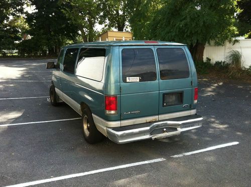 Here is a 1998 Econoline 150 Club wagon (Chateau) passenger van. Seats 6 to 7 people including the driver. Hunter Green and Silver. Some rust spots but no holes. Has damage to the passenger side rear wheel wheel as the lug nuts came loose once and the wheel came off. Runs good. engine is fine had new alternator put in . All new tires. INSPECTED till December of this year in pa. Interior in pretty good condition .Electric windows, cruise control, am-fm radio, Air conditioner(works fine) Has no major issues that I know of except 1. It needs a power steering pump and power steering gears.