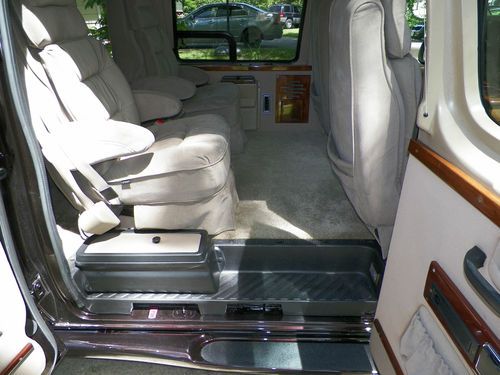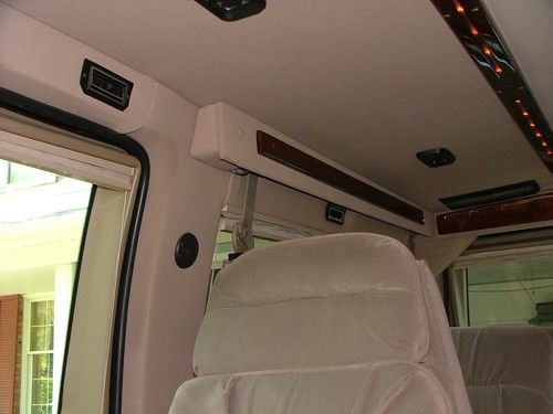 Options: AV Console Hook Up (Video Games), Front CD/Cassette/AM/FM Radio, Rear AM/FM Cassette, Flip Down TV with Wireless Headphones, VCR, Alarm System with Keyless Entry, 12 Speaker Audio System