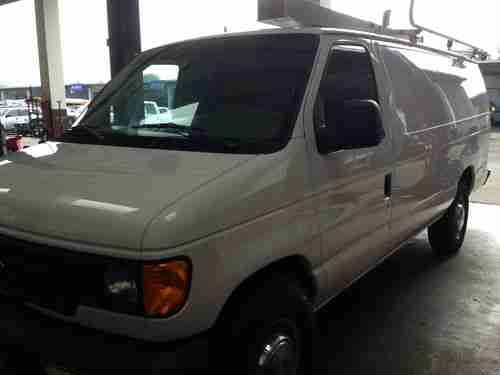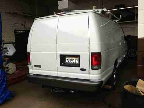 2004 E350 Diesel Work Van. 110,425 miles, just broken in. Runs great rebuilt Turbo. Ford Tech Owned. New factory Ford remanufactured transmission. Ice cold A/C. Van is equipped with a roof rack and a roof storage box. fully equipped with steel storage cabinets, and pull out vice, steel cage devider. Over all van is in very good shape. Normal nicks and dings, but paint is in good condition. Only one dent above the front bumber Valance panel. Registration expired, so California D.M.V. fees would be 2600. Out of the state of California there is no late registration fees. So If your from out of state, and are looking for a very good work vehicle this van is dressed for work. Low reserve, bid with confidence. Clean California title on hand. I can pick you up at San Diego Airport, or help with shipping arrangents. Any questions please call 760-518-5501 thanks