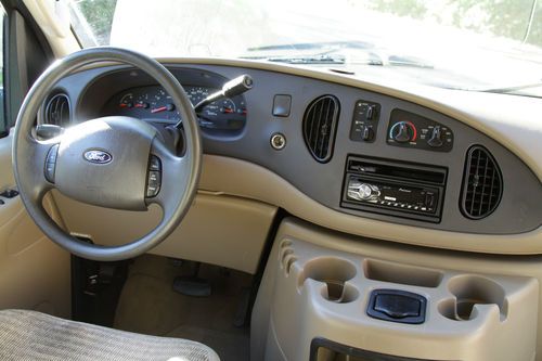 For Sale 2004 Ford E-350 12 Passenger Van. Estate Green Metallic Exterior- Tan Interior. 131k Miles, Runs great- Very Clean. I bought it March of 2012 from a dealer, I am the second owner. Mostly used to transport my family- non smoking. I put new tires on in June and have had it regularly maintained. I installed a Pioneer CD Player w/USB plug in to update the stereo. Some minor paint flaking off inside the wheel well due to no mud flaps and 1 small dent below the rear door hinge. Over all very good condition and recently detailed.