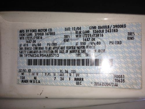 Worked for my boss for 10 years and i got this truck when it was brand new. Company just closed up and boss let me have the van due to being such a good employee. i have no use for it now. 2005 Ford E250 van has the 5.4 liter v8 motor with automatic transmission. Van was used for a HVAC company. Has 205,xxx miles on it and there all highway miles. Maintenance was always kept up on oil changes,plugs, wires etc done at the mechanic shop. I always took van to get work done so I know. Van comes fully shelved with all plastic shelving , (2) 3 tank freon racks, a rack to hold a acetylene torch bottle ( B tank or MC tank ) and have aluminum ladder racks. Also throwing in some hooks to mount so you can hang hoses or your AC gauge manifolds. Only know problems with the van that I had were the passenger door lock on outside is kinda falling out, easy fix tho and key works in it and the steering tie rod adjusting sleeve broke when I was transporting the van, however I had a mechanic replace it for me and adjust it. Have not driven van since due to it not having registration or insurance . If you have any questions email me or give me a call at 856-994-2134 Derek