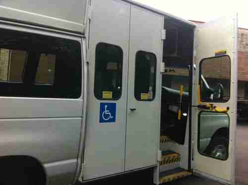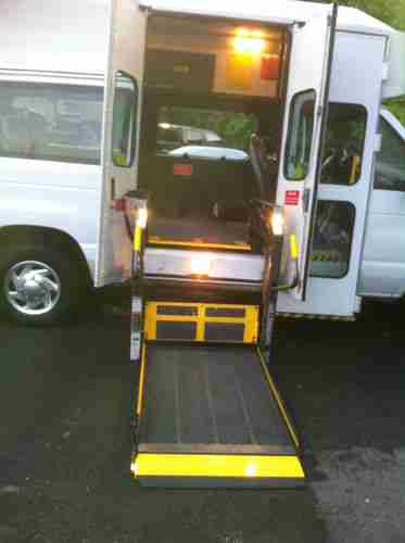 2008 Ford E-350 Super Duty Wheelchair Van, non-dully, 178K miles. It has 4 speed automatic transmission with OD V8 5.4L Gas engine 255 HP. It is in very good condition. IT HAS DUAL AIR AND HEAT AND A V8 THAT RUNS EXCELLENT. THE BUS HAS VINYL INTERIOR AND RUBBER FLOOR. IT HAS ANTILOCK BRAKES, A/C blows cold air, very clean gray interior, tire pressure monitoring. Wheelchair lift works perfect no issues. It has never been in accident, no leaks anywhere, few dents, clean title. Comes Equipped with rear A/C/Heater unit.