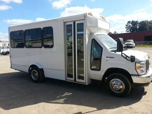 2009 Ford E 350 super duty, 12 Passenger Bus Van ,12,400 miles, Runs An Drives great .We put new Brakes Front an Rear..Good Tires ,,Also Fully serviced oil changed.. This was from The sandy flood in NJ Has a clear Title branded water Flood damage. We had it inspected . We did not find any water in the oils or in vehicle.. Dual Ac works Great please call any questions 434-610-2277 Jay Martin We also can Help with shipping anywere..will put a 3mon 3k mile warranty on bus..