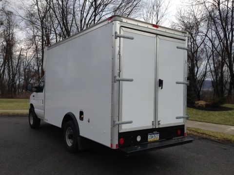 2012 Ford E350 with 12' Supreme body and only 12,054 miles. 5.4L gas with 5-spd auto trans and 10,050 GVW. PW, P/locks, p/mirrors, tilt, cruise, am/fm/cd, AC, full height cab interior, cloth captains chairs, engine block heater. Excellent condition, still has factory powertrain warranty. Looks and runs like it should. Body has full width opening barn doors and 6'-6" interior height. Shelving is easily removed. Will assist buyer with shipping. Terms are cash for in person transactions or Certified Funds if buyer provided shipping. NOTES ADDED 01/28/2014: Mileage shown in pic is 12,054.4, not 120,054! Link to Supreme Body information: http://www.supremecorp.com/supreme.php?page=product&body=parcel&product=8 |